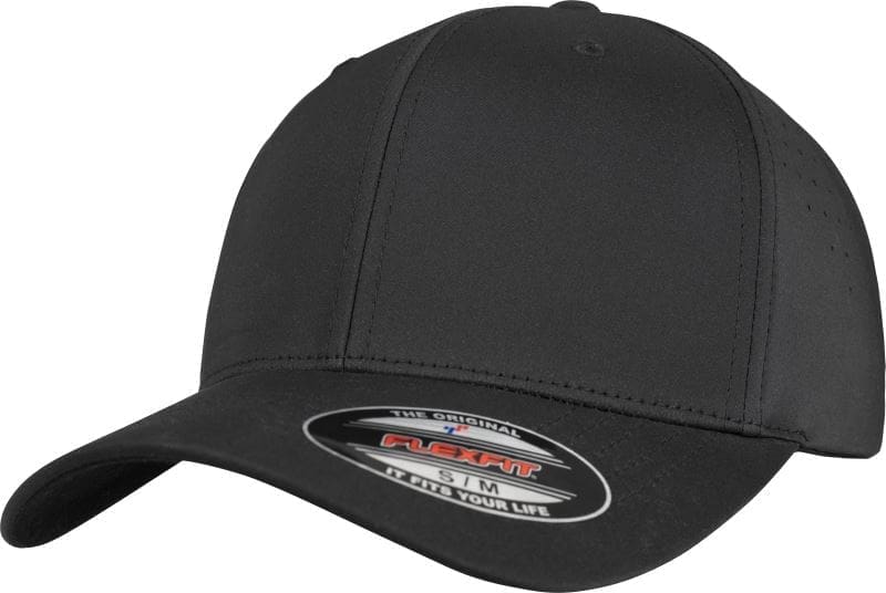 Feine Lochstruktur seitlich und hinten, Aufkleber auf dem Schirm, gebogener Schirm, 5 Ziernähte am Schild, Frontpanele verstärkt, Flexfit® Technologie ohne Verschluss, nicht waschen, nicht bügeln, nicht trocknergeeignet, nicht chemisch reinigen