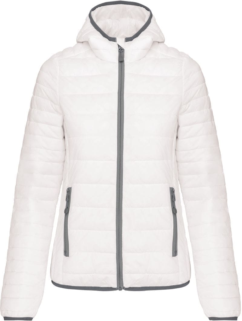 Taillierter Schnitt, Kragen mit Kapuze, Futter und Kapuze innen in Kontrastfarbe (außer bei navy), 2 Seitentaschen mit Reißverschluss, Seiteneinsätze mit Längssteppung, im Tragebeutel verstaubar, 40° waschbar, nicht trocknergeeignet, nicht chemisch reinigen