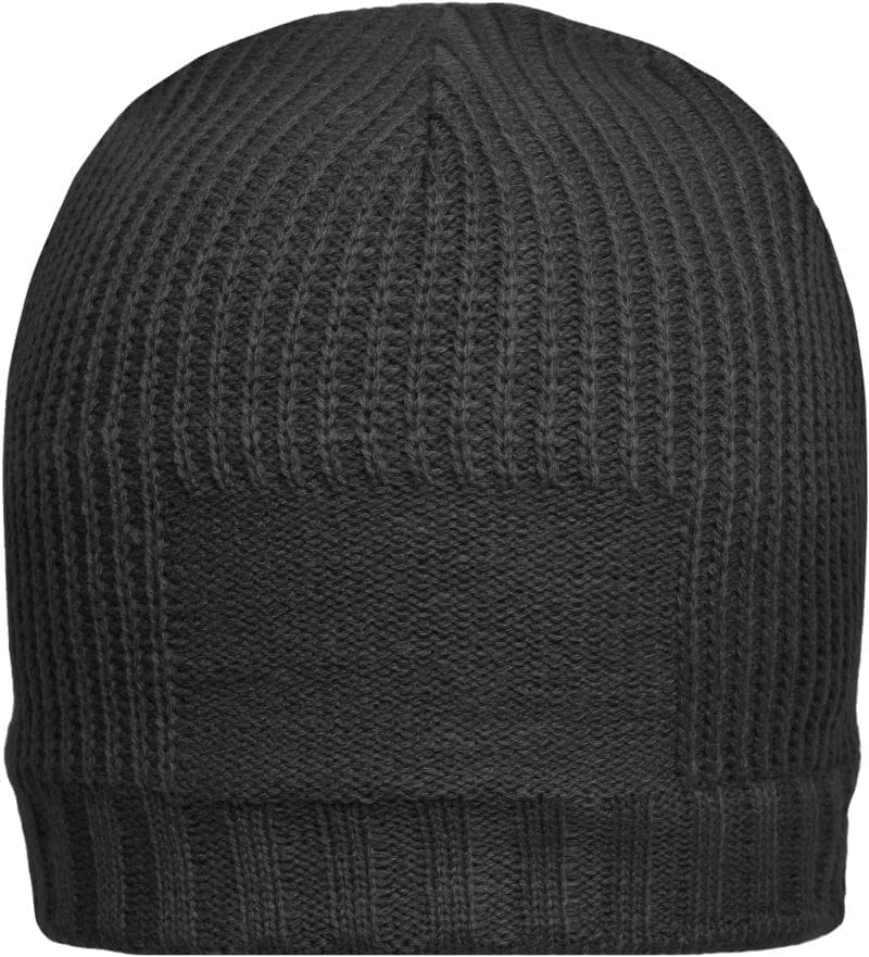 Rippstrick-Beanie, glattgestrickte Fläche vorne 8x6cm für Veredelung, 40° waschbar, Handwäsche, nicht bügeln, nicht trocknergeeignet, Innenseite: Fleeceband